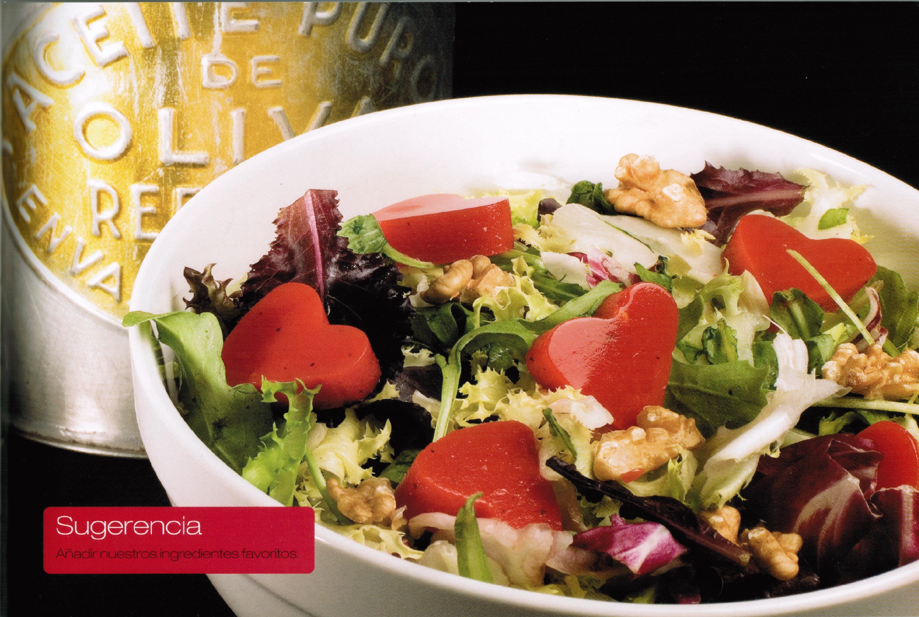 Ensalada con nueces y tomate gelificado
