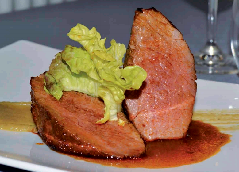 Presa de Ibérico Asada con Crema de Ajo Negro y Miel
