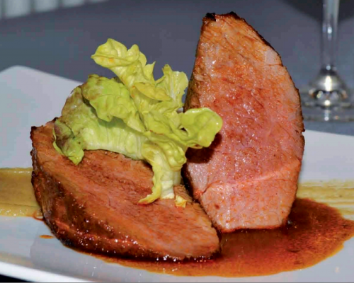 Presa de Ibérico Asada con Crema de Ajo Negro y Miel