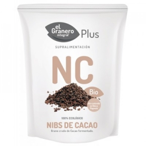 Nibs de cacao tostado de cultivo ecológico de El Granero Integral se pueden tomar directamente o añadirlos a recetas de cocina o postres. El cacao contiene fosforo, magnesio, hierro, potasio, calcio, zinc, cobre, manganeso, vitaminas A, B1, B2, B3, C, E, ácido pantoténico, tiamina y riboflavina, cafeína, teobromina y taninos, antioxidantes naturales, etc. Potencia antioxidante que nuestro cuerpo agradece.